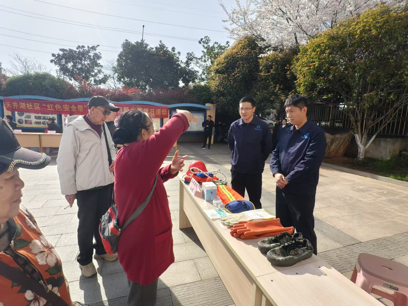 活动现场,我司工作人员结合实操经验,为群众及养老院老人详细讲解安全用品使用方法,围绕安全帽、安全带、应急照明设备等安全器具的操作要点、注意事项进行细致演示,现场学习氛围浓厚,群众踊跃咨询交流,工作人员逐一耐心解答。